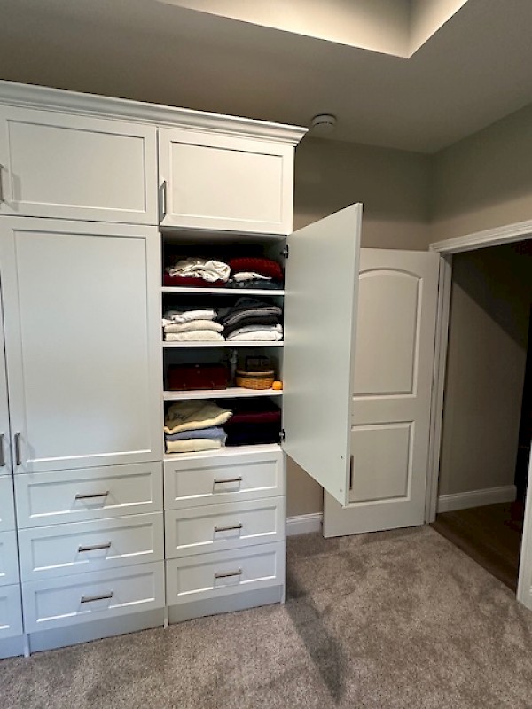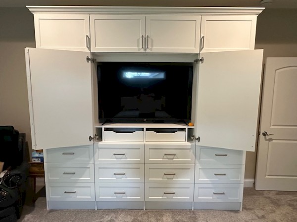 Master bedroom entertainment center with drawer/shelf storage
