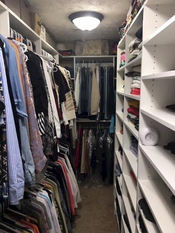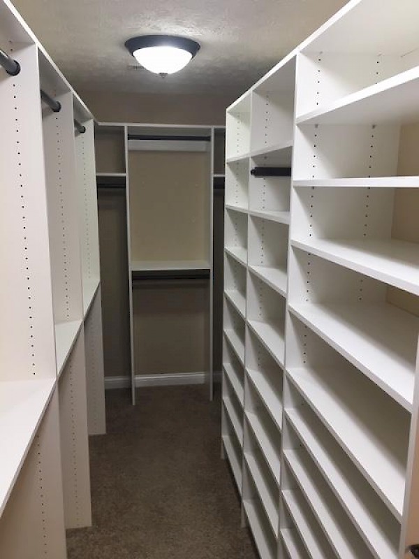 Custom Walk In Closet with Oil Rubbed Bronze Poles designed and installed by Organized Options.