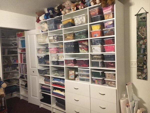 Custom hobby room cabinetry designed and installed by Organized Options. White finish with flat style drawer fronts.