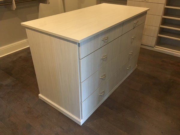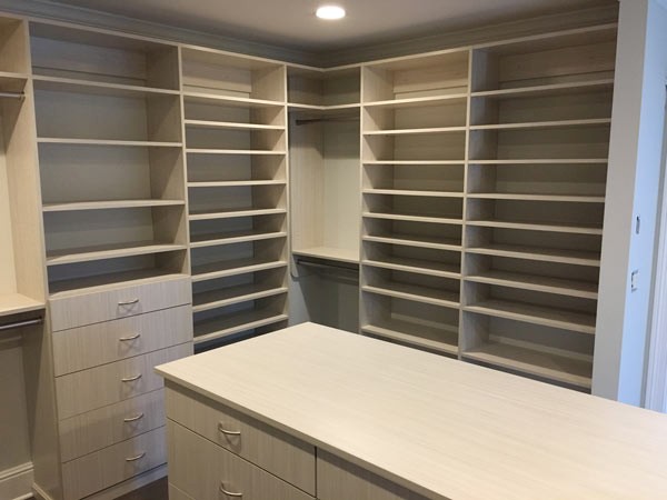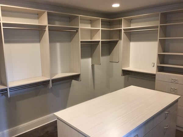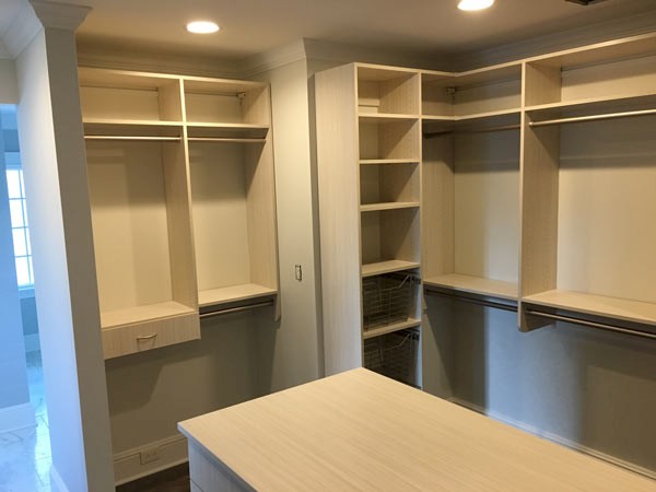 Check out all the hanging and shoe shelf area in this master closet along with island with matching counter top.
